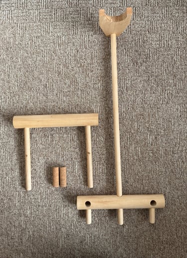 The three piece design allows for easy assembly and dismantling. The individual pieces can be hung up on wall hooks for neat storage.